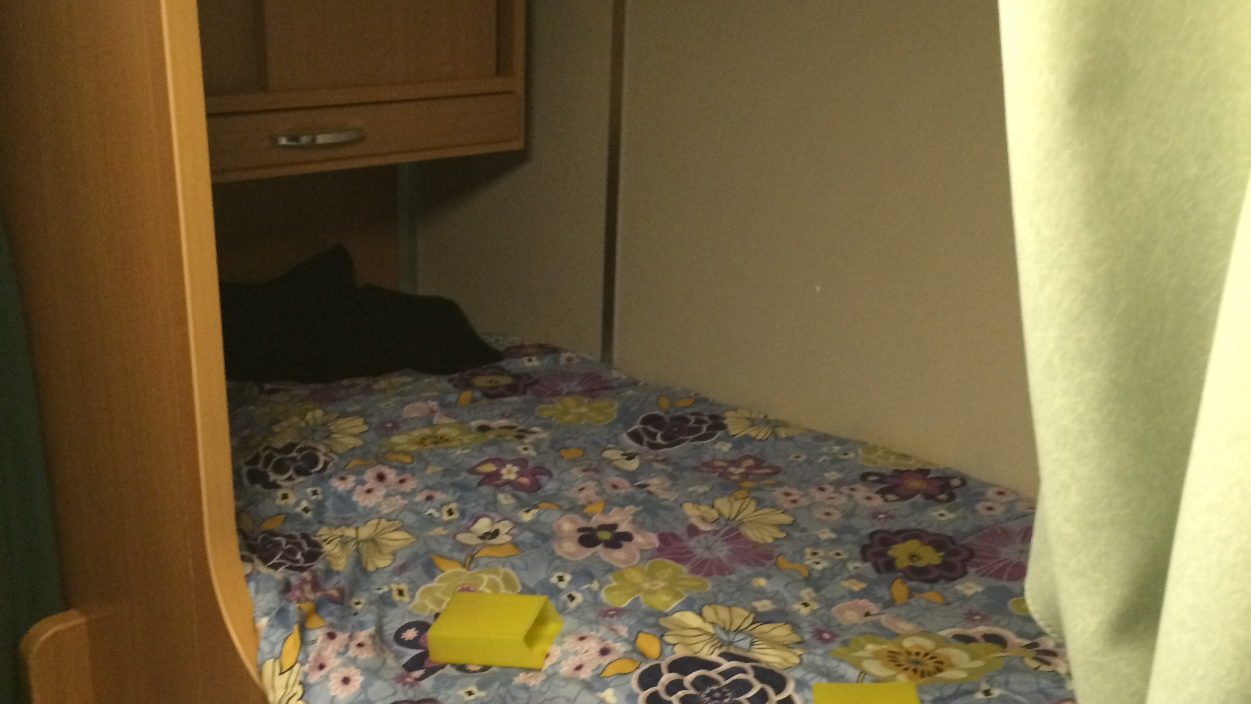 従来の船より少し広くなった寝台で、横になって体を休めたり、スマホを見たり。